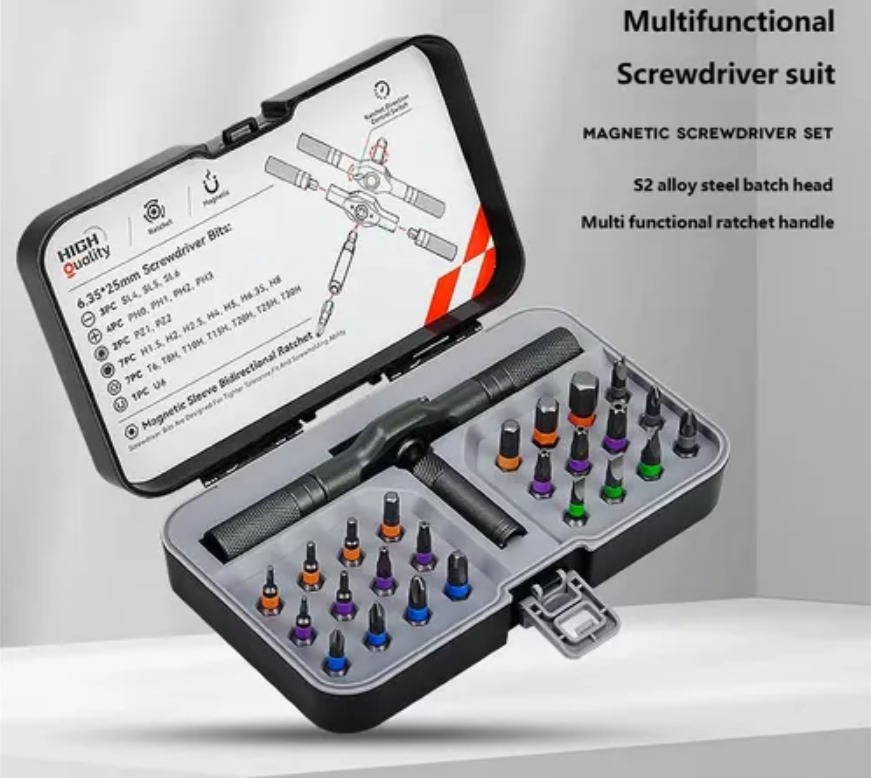 I bought this 24-in-1 set for common home tasks around Port Harcourt — fixing fans, assembling furniture, opening a few gadgets. The magnetic bits are strong and hold screws well so I don’t easily drop them. The compact case is a bonus because I can store it small, and it’s good for quick jobs without needing full tool-set.